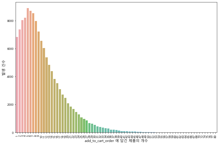 plt.xlabel('장바구니에 추가' , fontsize = 15)