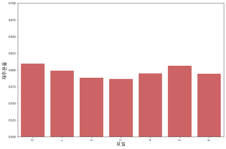 plt.title('다른 제품 카테고리의 재주문율' , fontsize =20)