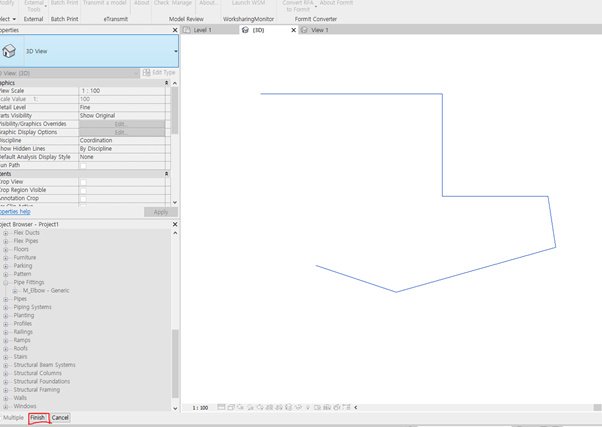 Revit api 를 활요하여 Pipe를 생성하고 Elbow를 이용하여 Pipe Fitting 처리한다.