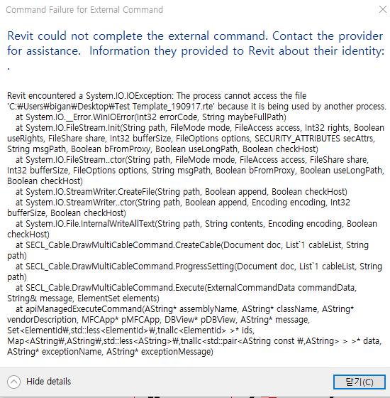 [ Revit ] 해결방법:'Starting a transaction from an external application running outside of API context is not allowed (0) | 2019.10.29 |