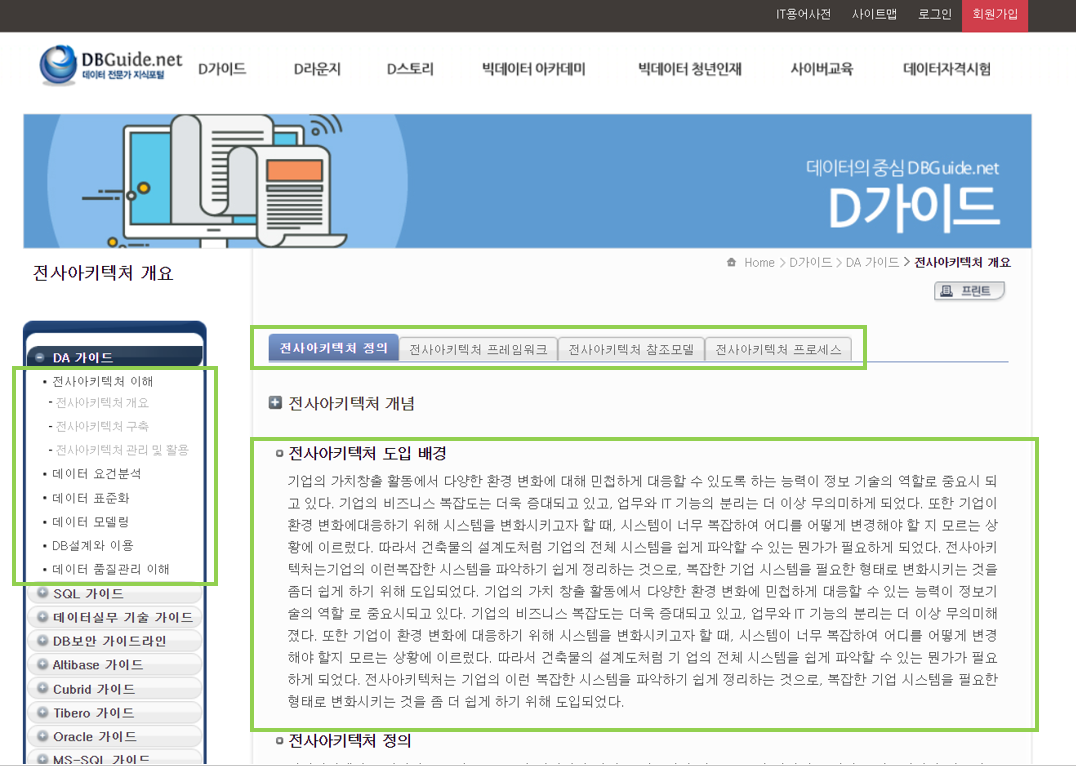 해당 페이지에 나오는 내용들은 데이터아키텍처 전문가 가이드에 나와있는 내용과 100% 일치하므로 번거롭지만 시험범위를 확인 후 포함되는 내용만 프린트하여 보는것을 권장드립니다.