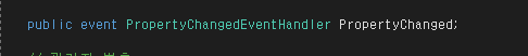 - public event PropertyChangedEventHandler PropertyChanged; 코드 아래에 밑의 코드를 추가시킨다
